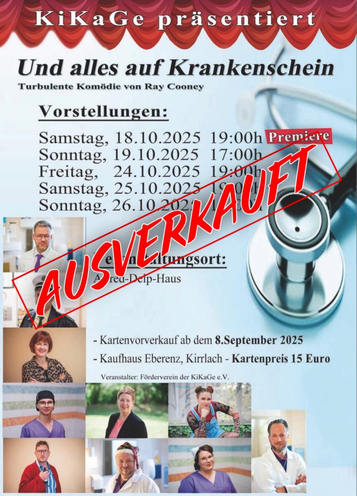 Die Theater-Gruppe der KiKaGe präsentiert im Herbst 2025 ihr neues Stück Und alles auf Krankenschein Turbulente Komödie von Ray Cooney