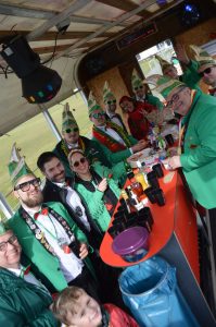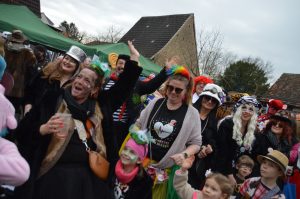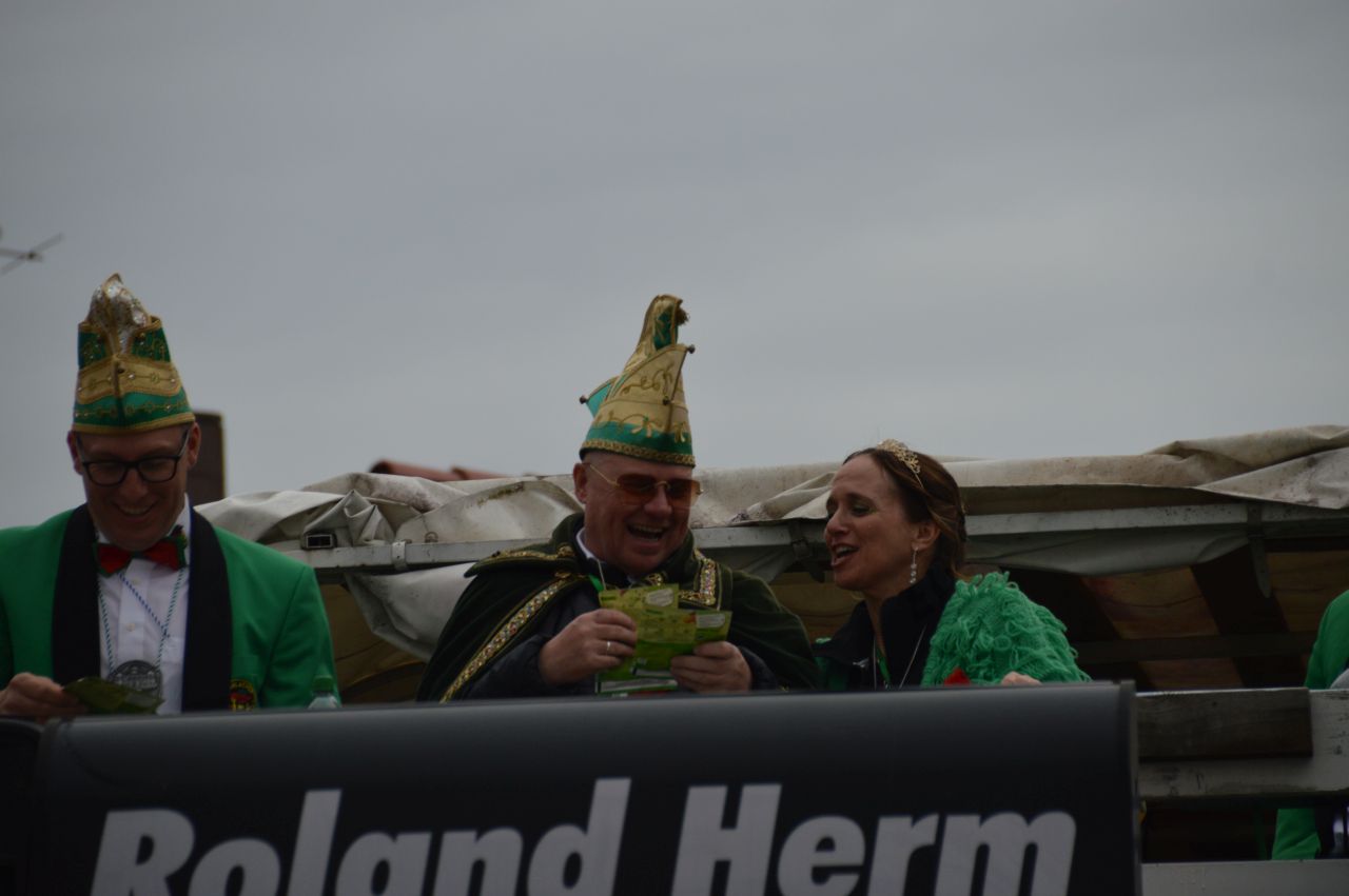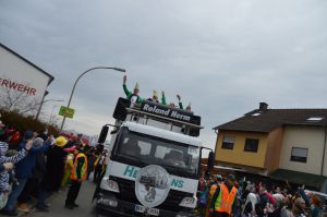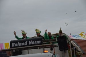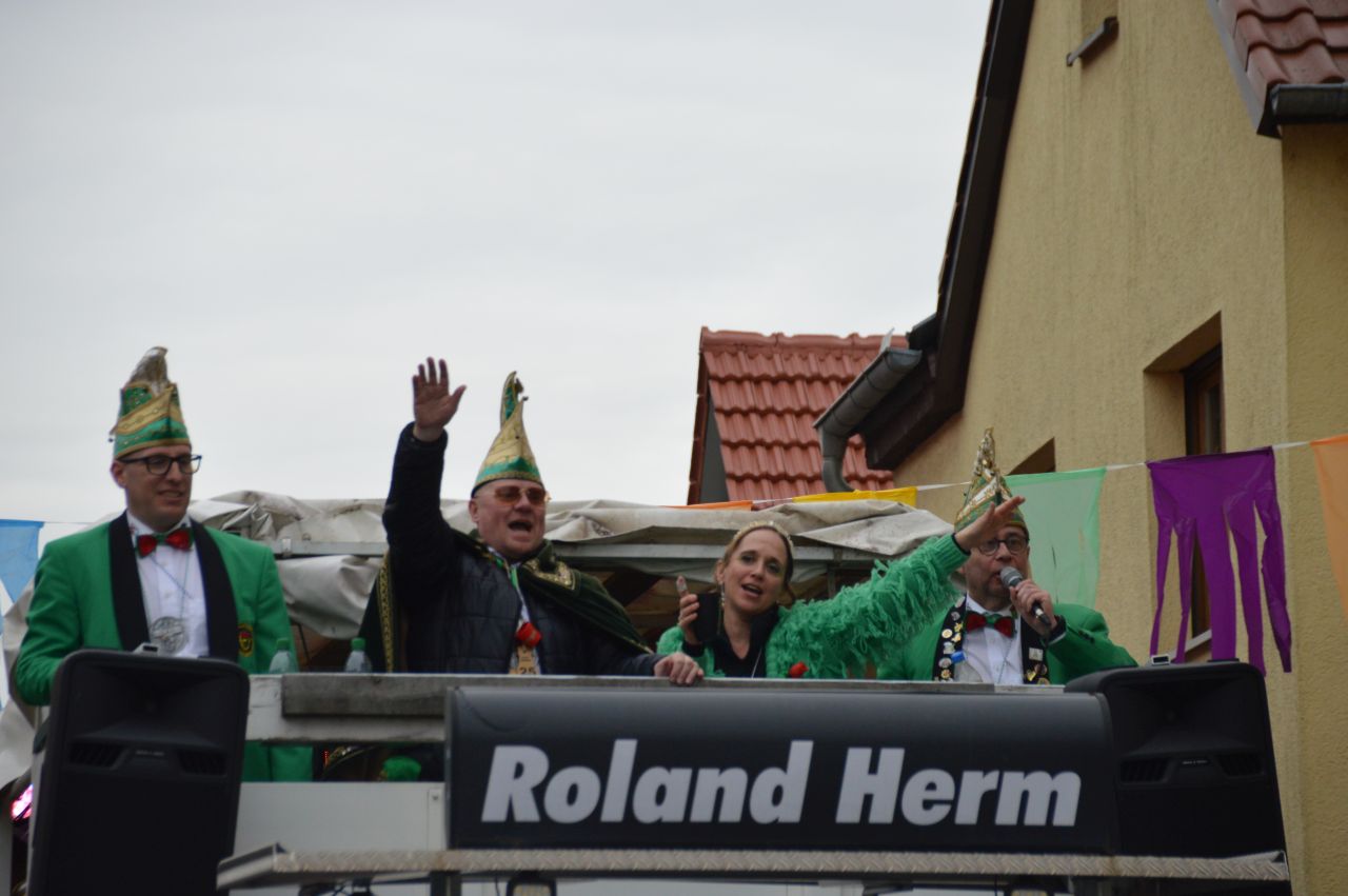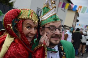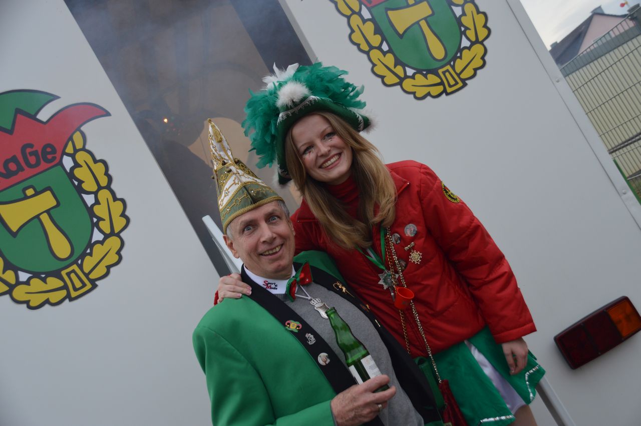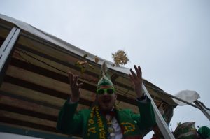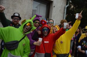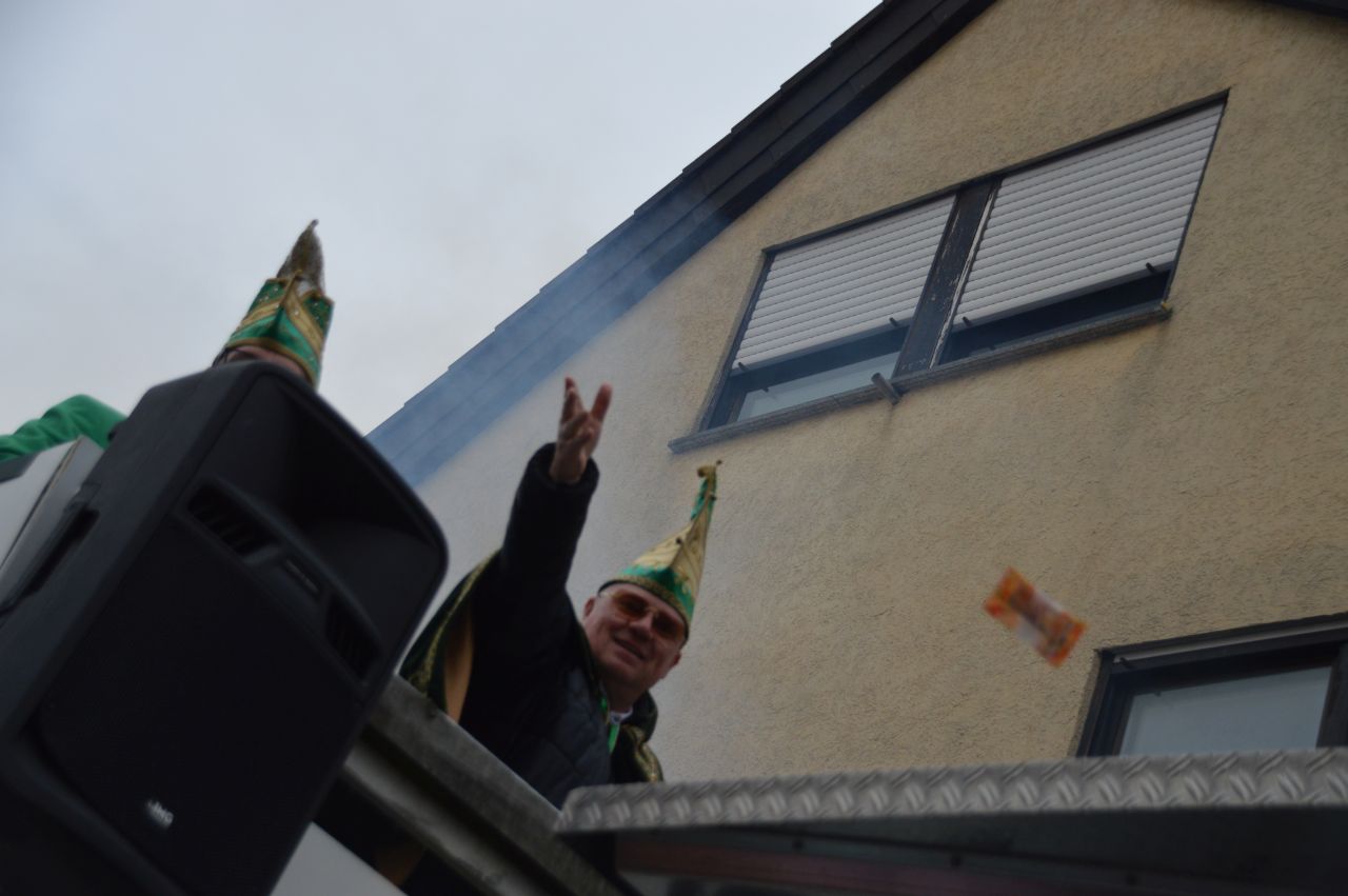 Abordnungen der KiKaGe, bestehend aus Elferrat, Ehrenelferrat und natürlich dem Prinzenpaar Iris II. und Jürgen IV., besuchten am Samstag gleich 2 Prunksitzungen. Die größte Abordnung, insgesamt 37 Teilnehmer mitsamt Prinzenpaar, wurde nach Wiesental zur Prunksitzung des KHC entsandt. Eine weitere Abordnung besuchte die Prunksitzung des FFC Forst. Schon am Vormittag gegen 10 Uhr hatte das Prinzenpaar zum Umtrunk eingeladen, bevor es zum Umzug nach Kronau weiterging. Die Kirrlacher Karnevals-Gesellschaft war hier wieder sehr stark mit 83 Teilnehmern vertreten! Der Tross, mit der Startnummer 27, bestehend aus unseren Spraddlfrauen der Prinzengarde und unseren Trainerinnen, gefolgt vom Spraddl-Shuttle mit den Hoheiten und Ehren- und Elferrat, schlängelte sich bei angenehmen 15 Grad Celsius und strahlendem Sonnenschein durch die sehr gut besuchten Straßen von Kronau!